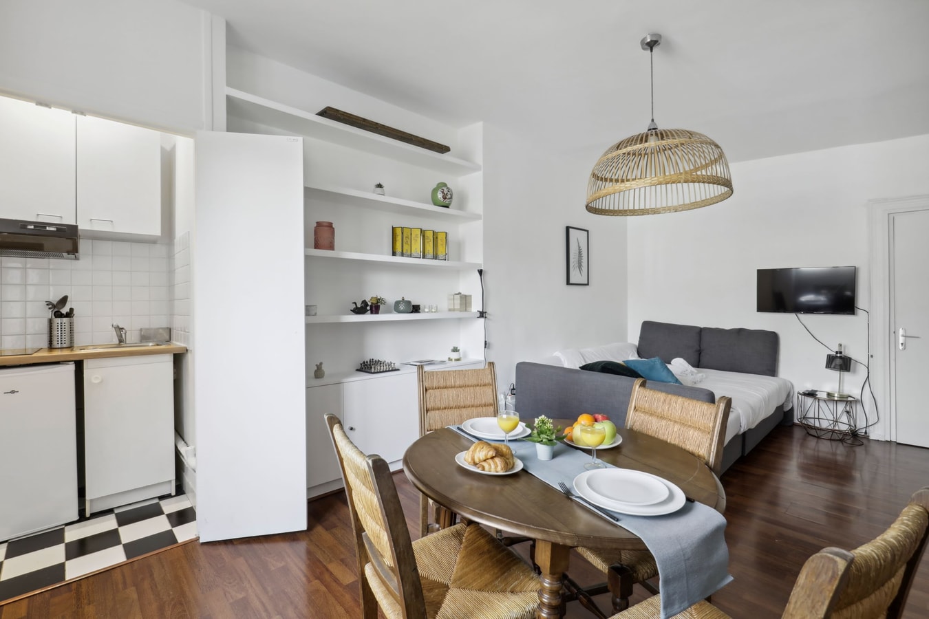 This studio apartment with 1 bathroom accommodates up to 4 guests and is family-friendly, including children and infants. Spanning 25 square meters, it is located on the 3rd floor of a secure building with elevator access. Guests enjoy fast and free Wi-Fi, a clothes washer, a flat-screen TV, and other convenient amenities. The nearest Metro station is Saint-Paul (Line 1), and the apartment is situated in the vibrant and safe Le Marais area.
