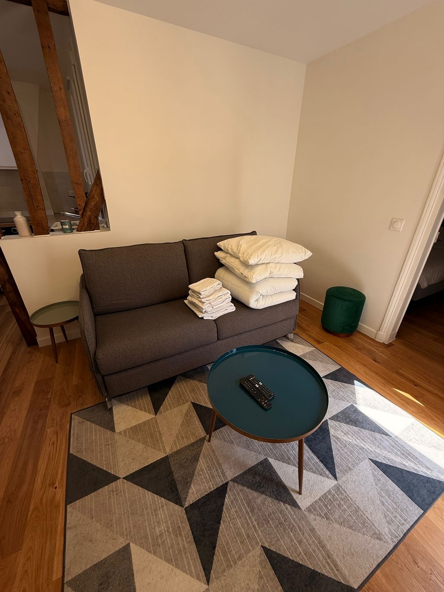 Stay in the vibrant Montorgueil Quarter with this charming 1-bedroom apartment, offering 35 square meters of comfort. Located on the 4th floor of a secure building (no elevator), it’s perfect for immersing yourself in Parisian life. Enjoy hassle-free self check-in from 3:00 PM by collecting the keys at a nearby shop. The apartment features ultra-fast Wi-Fi (1 Gbps), ideal for remote work or streaming.