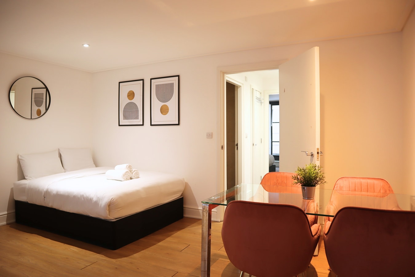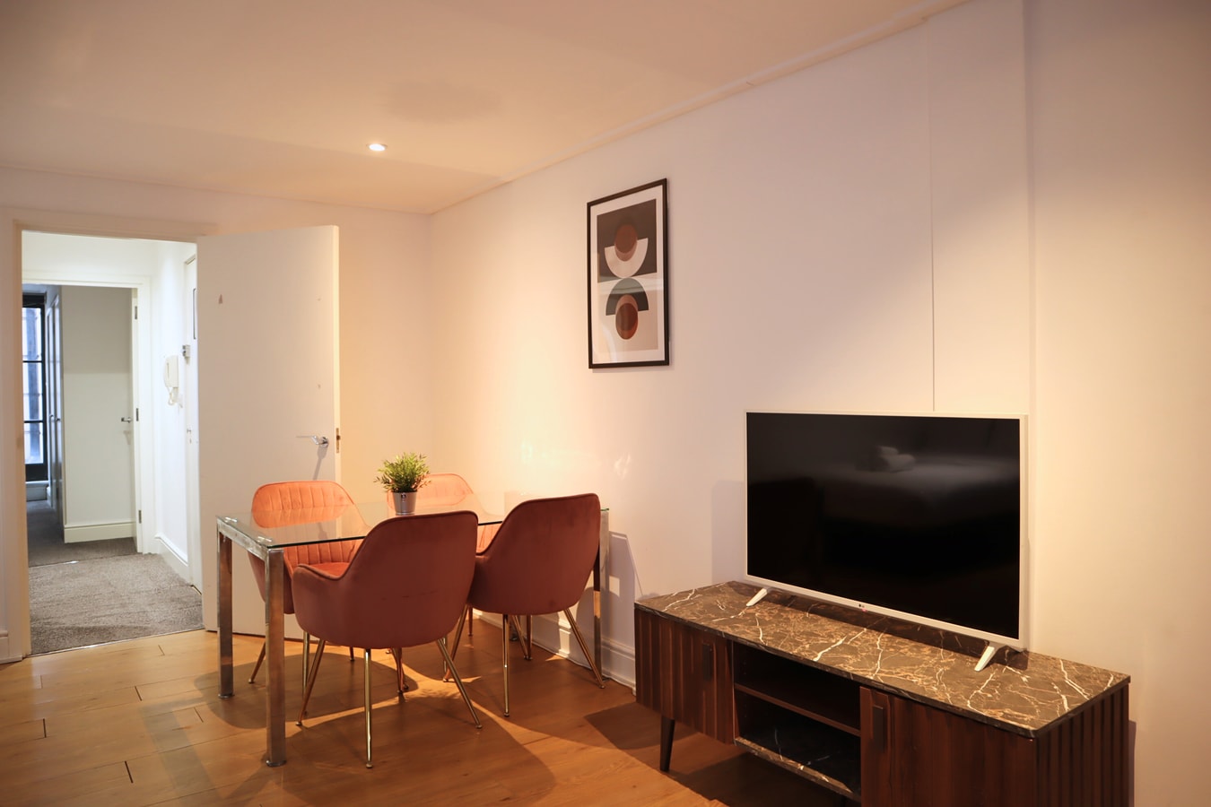 Stay in the heart of London’s Holborn district with this charming 1-bedroom, 60-square-meter apartment located on the basement level of a secure residential building (no elevator). Enjoy the convenience of a small private outdoor patio, perfect for relaxing. Please note, this is a strictly non-smoking property. Self check-in is available from 3:00 PM with key pick-up at a nearby shop. The apartment features super-fast 1 Gbps Wi-Fi, ideal for remote work or streaming your favorite shows.