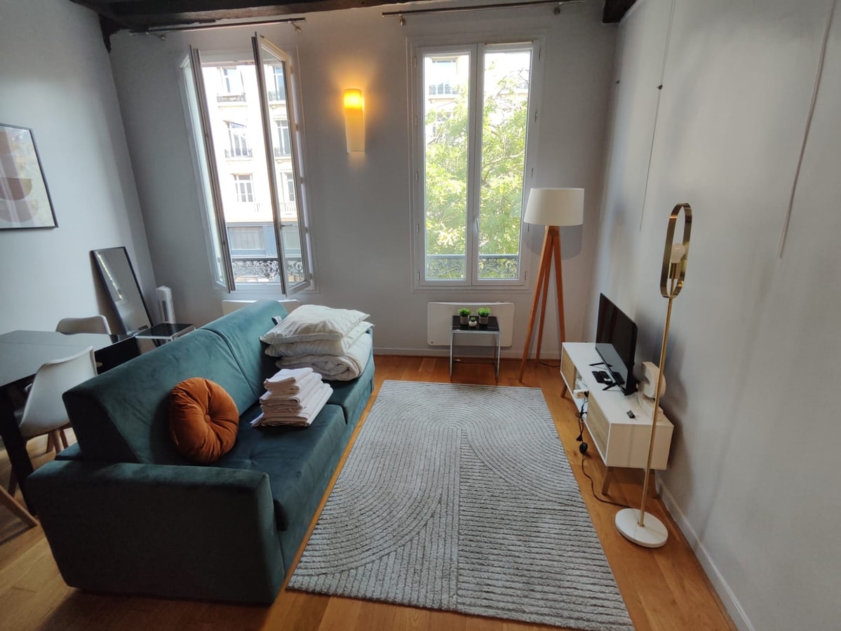 Experience the vibrant heart of Paris’s Le Marais in this stylish 1-bedroom apartment, situated on the 2nd floor of a secure residential building (note: no elevator). Enjoy the convenience of self check-in from 3:00 PM by collecting your keys at a nearby shop. Stay connected with super-fast 1 Gbps Wi-Fi—perfect for remote work or streaming your favorite shows. A refundable damage deposit is required, fully compliant with Airbnb’s policies.