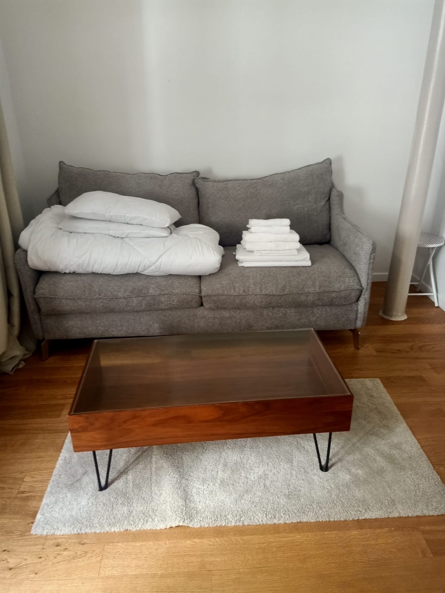 The flat will be professionally cleaned and sanitized before your stay. For your comfort, we continue the flow of air throughout the home which may include the opening windows, using a heater or fans. These factors may slightly alter the state of the home between the time the housekeeper has finished cleaning and the time you arrive. When you enter the home, you are bringing in dust, debris, hairs, lint, and other particles. These particles may settle on surfaces within the home. *You acknowledge that by accessing the home, you may directly or indirectly affect the surfaces and sanitization of the home due to the natural movement of air throughout the home.