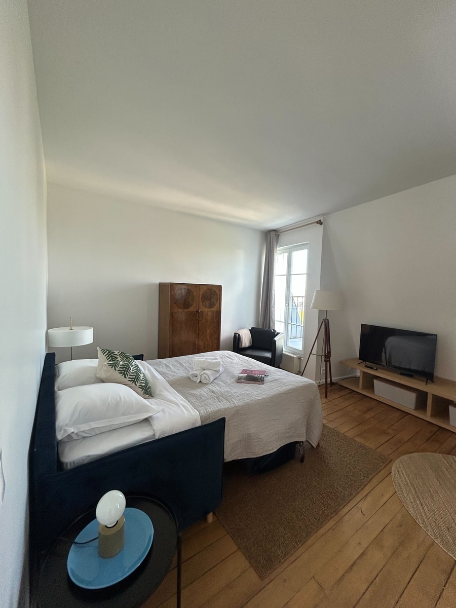 Experience the vibrant energy of Paris’s Le Marais in this stylish 1-bedroom apartment on the 7th floor of a secure building (note: no elevator). Self check-in begins at 3:00 PM with key pickup at a nearby shop. Enjoy super-fast 1 Gbps Wi-Fi, perfect for remote work or streaming your favorite shows. A refundable damage deposit is required, fully compliant with the platform’s policies.