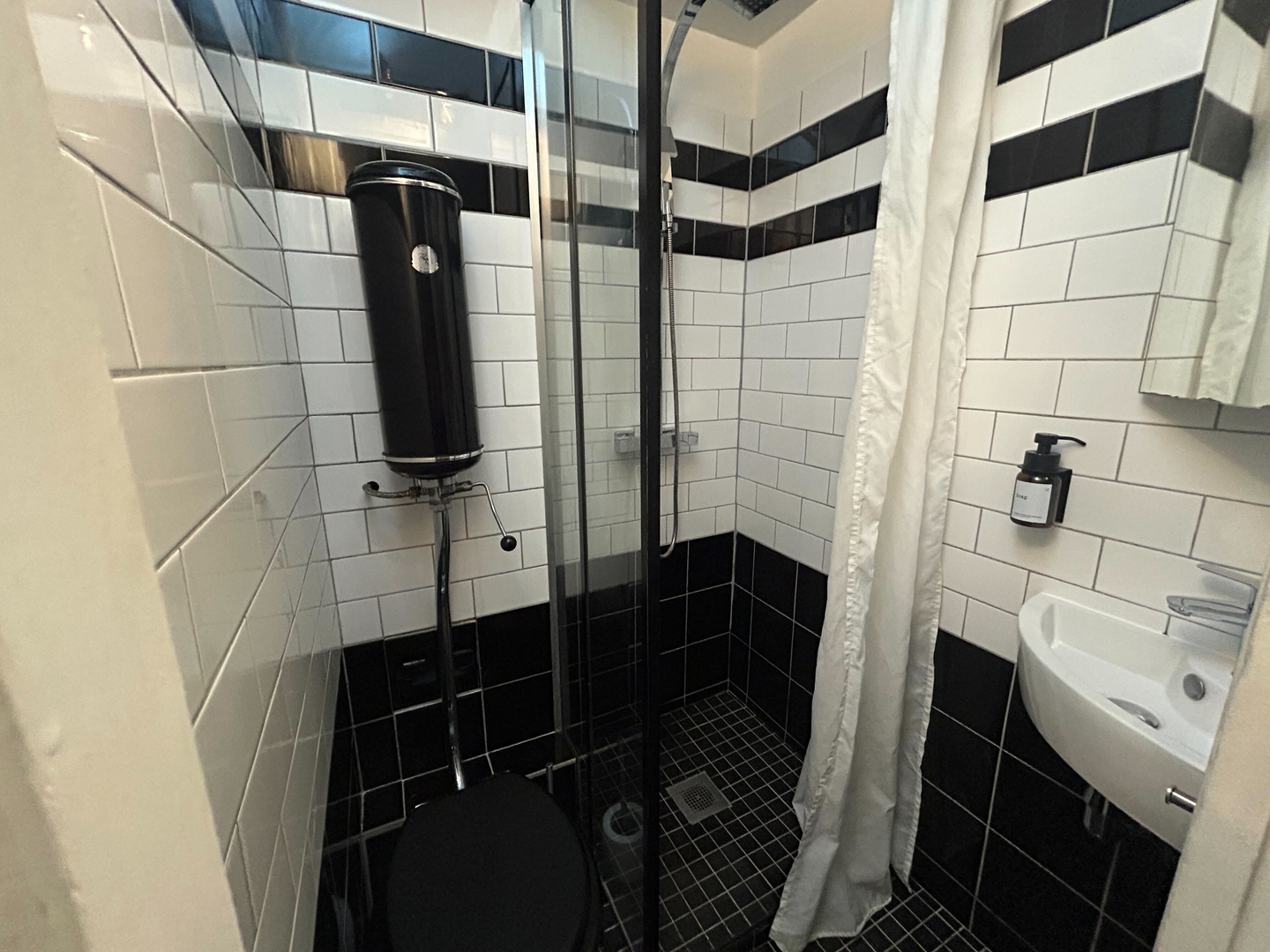 The sleeping area is street facing and furnished with a double bed with a quality mattress. Professionally laundered sheets, comforters, pillows and pillowcases are provided to you, as well as bath towels for each guest. The flat has one bathroom accessible via the hallway with a shower, toilet and sink. The bathroom is equipped with a hair dryer plus complementary toilet rolls, shampoo, shower gel and hand soap to start your stay.